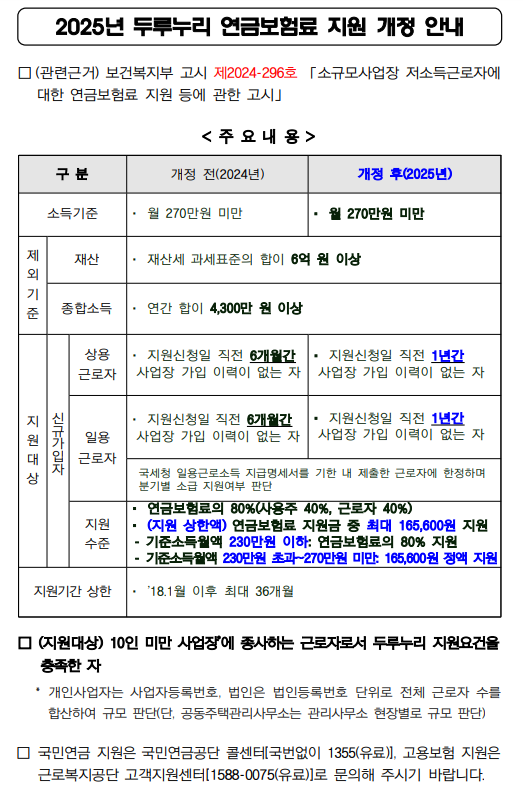 두루누리 사회보험료 지원사업은 소규모 사업장에서 근무하는 근로자와 사업주의 사회보험료 부담을 경감하고자 마련된 제도입니다. 고용보험과 국민연금을 통해 사회적 안전망을 강화하고, 안정적인 고용 환경을 제공하는 것을 목표로 합니다. 소규모 사업자과 근로자를 지원하여 시회보험의 사각지대를 줄이고, 더 많은 사람들이 혜택을 받을 수 있도록 돕고 있습니다. 두루누리 지원사업의 2025년에 개정된 내용을 포함해서 혜택, 지원 절차와 지원금까지 알아보겠습니다.